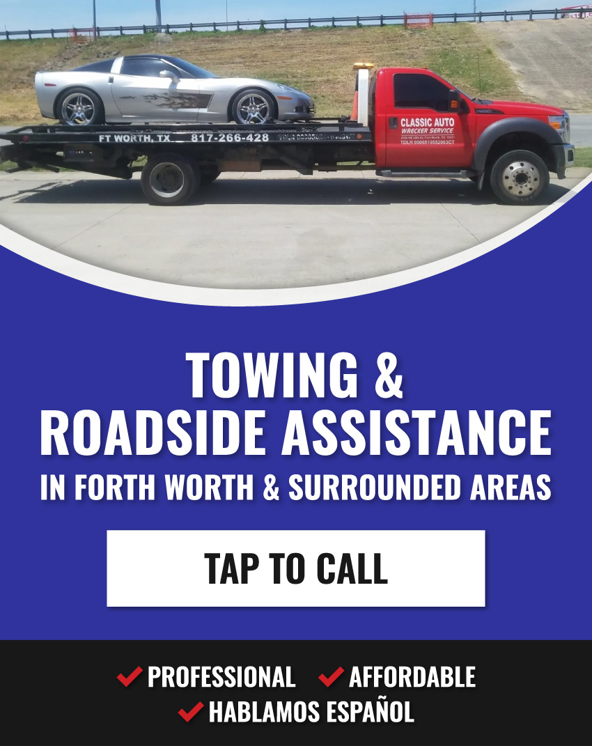 We are the answer to your problems on the road! Classic Auto Wrecker Service is a light-duty towing company with the hands-on experience you need to get up and running again. Everything from motorcycles to light trucks is eligible for service, while expert operators are ready to fix your flats, retrieve your keys, or give your battery a jump. Available Monday through Saturday in Fort Worth and the surrounding areas, we’re ready to roll when you need us.